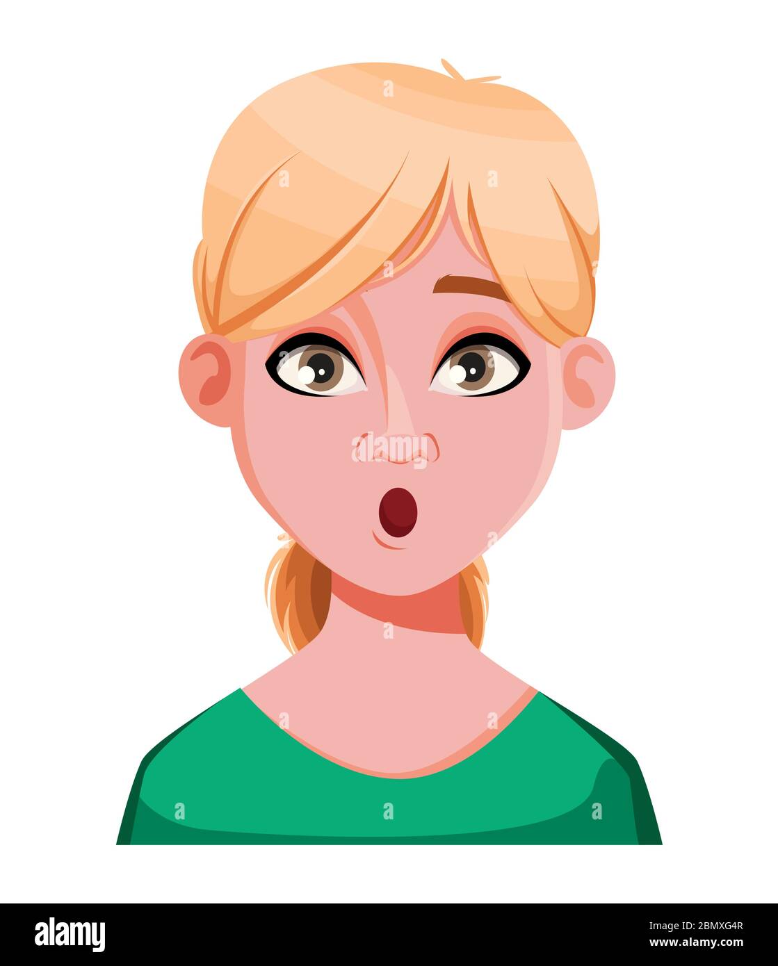 Expresión de cara de mujer hermosa doctor, sorprendido. Emoción femenina. Lindo personaje de dibujos animados. Ilustración vectorial aislada sobre fondo blanco Imagen Vector de stock - Alamy