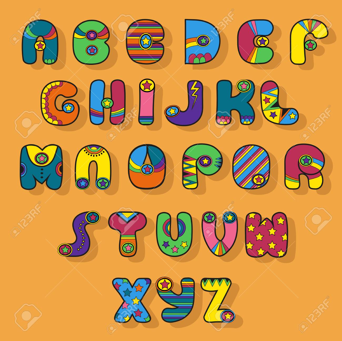Alfabeto Colorido Estilo Superhéroe Letras De Dibujos Animados Con Elementos De Decoración Brillante. Ilustración Fotos, retratos, imágenes y fotografía de archivo libres de derecho. Image 76799222