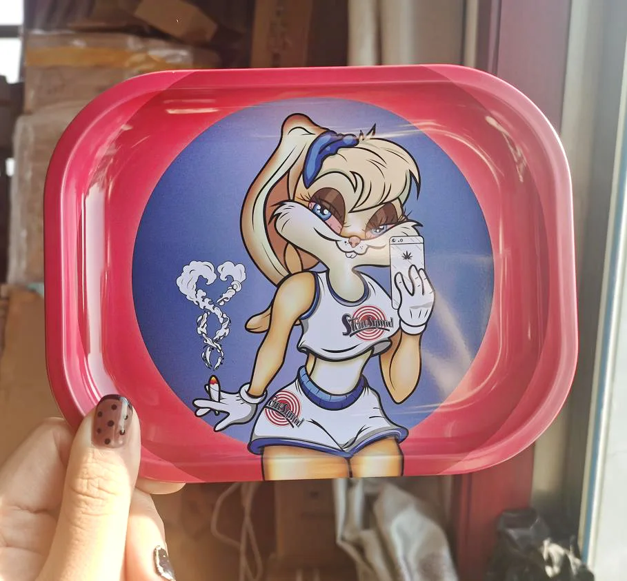 Bandeja rodante de conejo de dibujos animados de alta calidad para fumar tabaco, hierba, 18x14CM, placa de hojalata para cigarrillos, accesorios para fumar - AliExpress