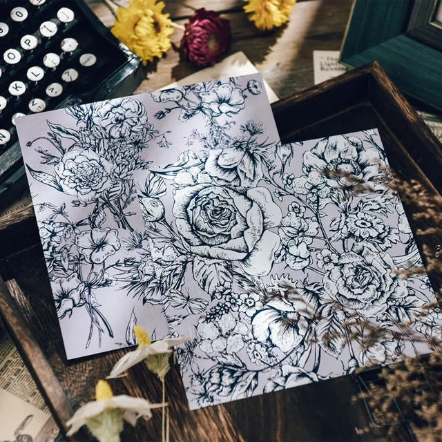 Paquete de papel para manualidades, 12 hojas, dibujo de bocetos de flores, cartulina de papel artesanal, diario de chatarra, Ephemera DIY, Material de álbum de recortes - AliExpress