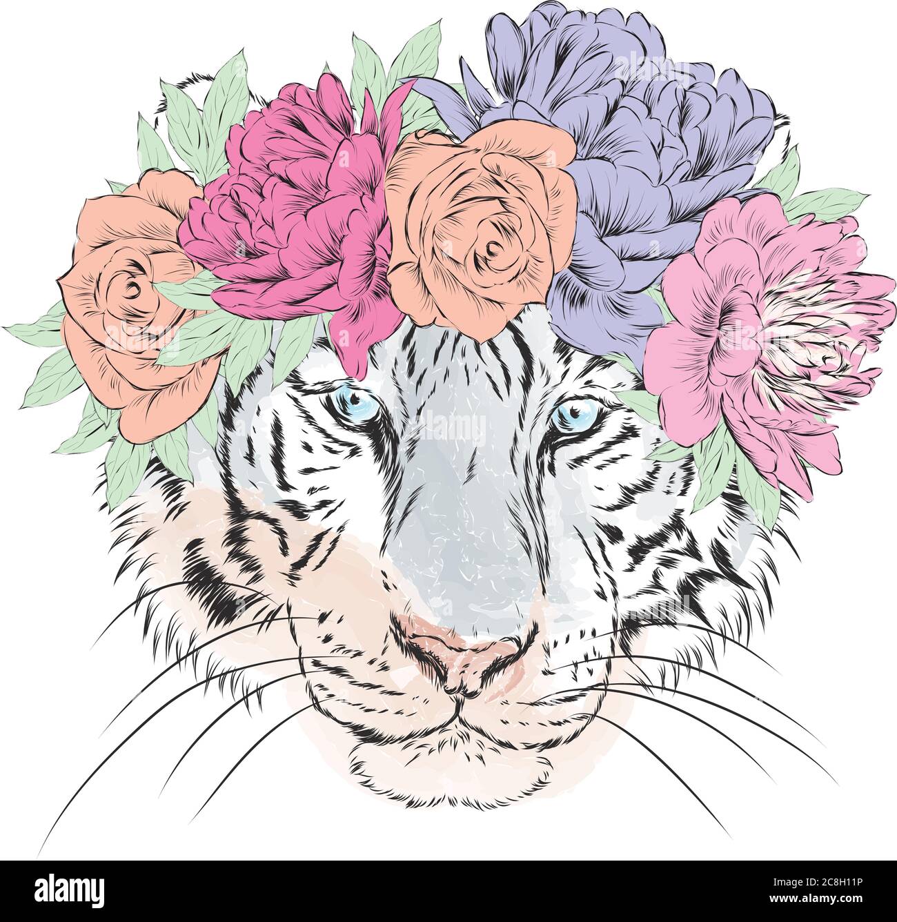 Vector tiger in a wreath of flowers. Hipster. Vector illustration for greeting card, poster, or print on clothes Stock Vector Image & Art - Alamy