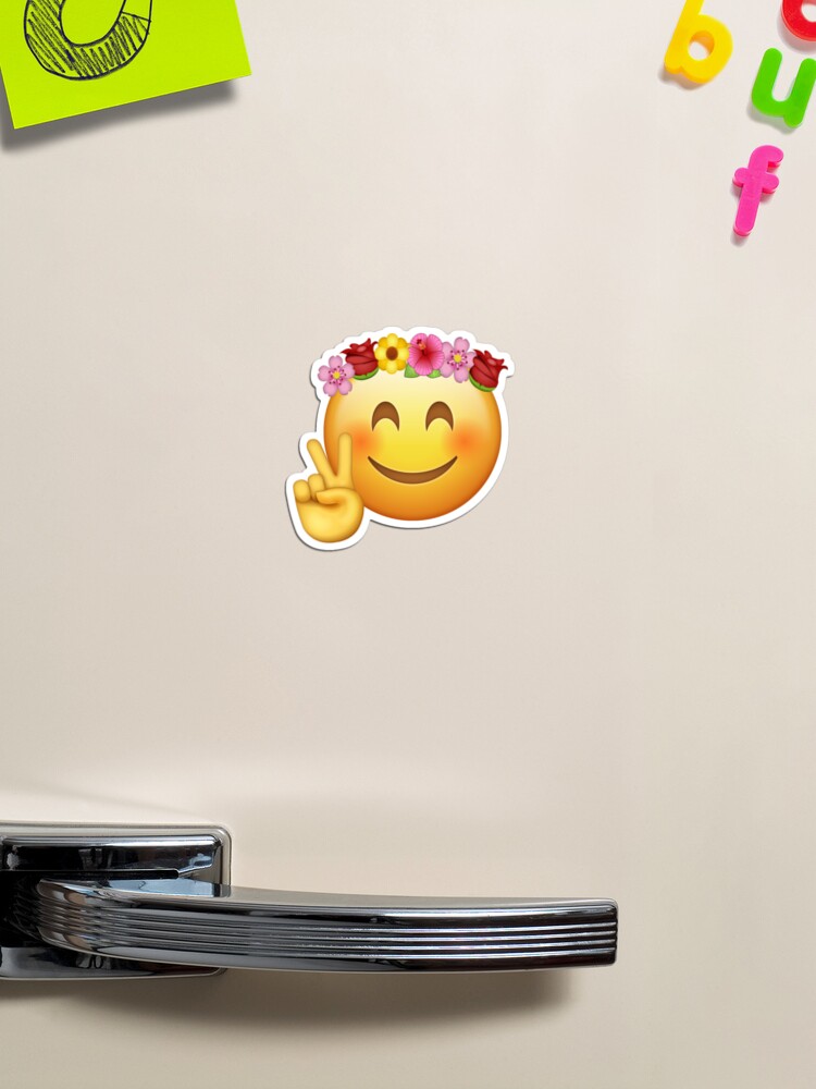 Imán for Sale con la obra «hipster emoji - corona de flores signo de la paz» de cameronbaba | Redbubble