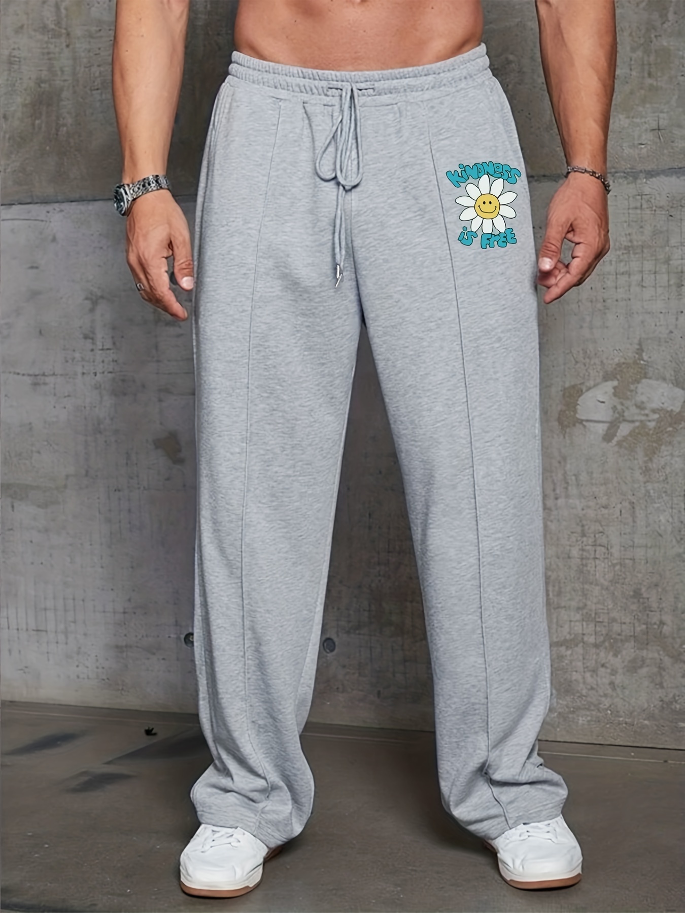 Pantalones De Pierna Recta Con Cordón De Talla Grande Para Hombre, Pantalones Largos Con Gráfico De Flores De Dibujos Animados Sueltos Informales Hipster Callejero - Temu Mexico