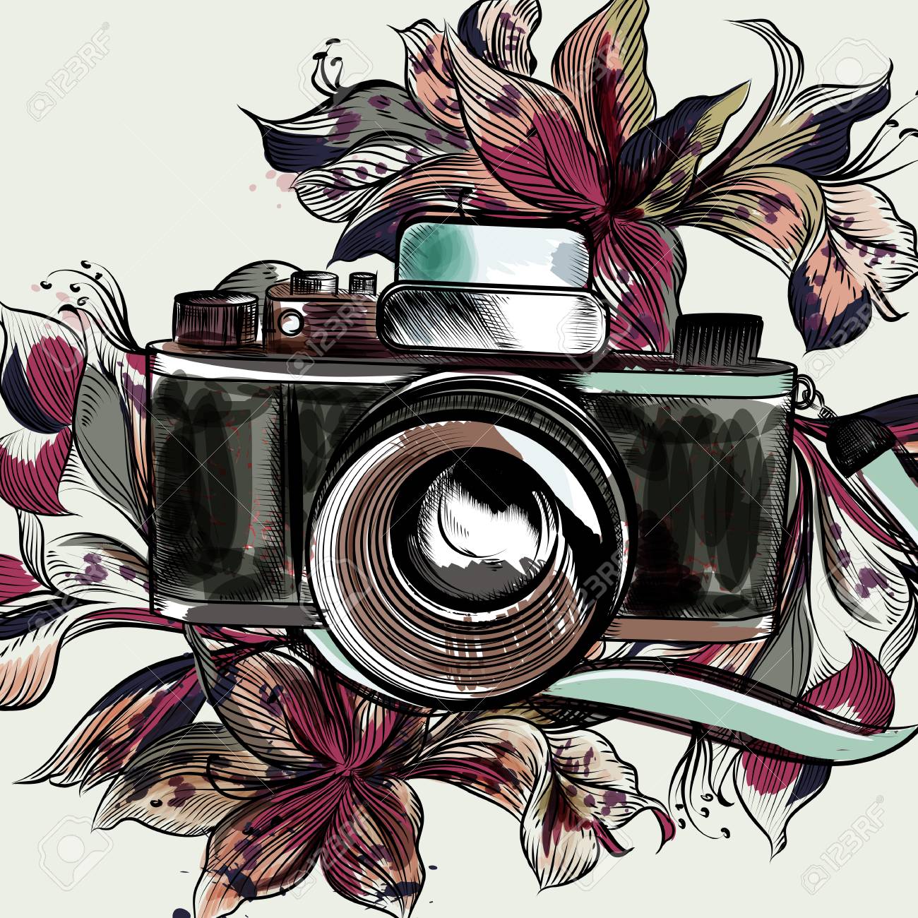 Cute Illustration With Hipster Camera And Flowers Royalty Free SVG, Cliparts, Vectors, and Stock Illustration. Image 81312053.