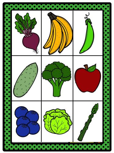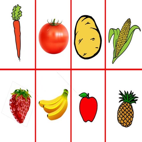 LOTERÍA DE IMÁGENES: FRUTAS Y VERDURAS – Imagenes Educativas