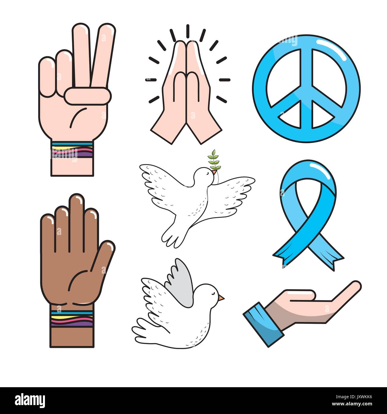 Establecer la paz símbolo mano a la armonía global Imagen Vector de stock - Alamy