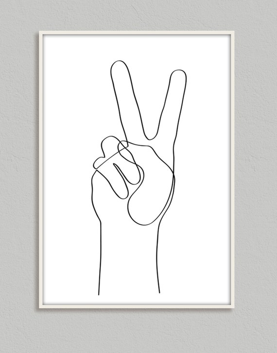Paz mano gesto-una línea mano-minimalista dibujo a mano-arte moderno de la pared - Etsy México