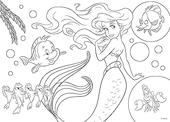 Ariel y sus amigos bajo el océano - La Sirenita - Dibujos para colorear para niños
