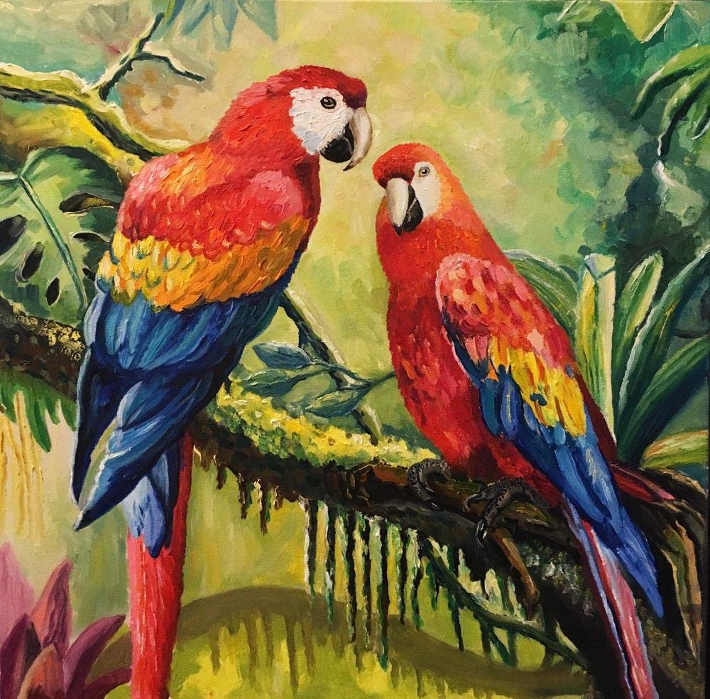 Loros de colores. | Cross paintings, Pet birds, Painting kits