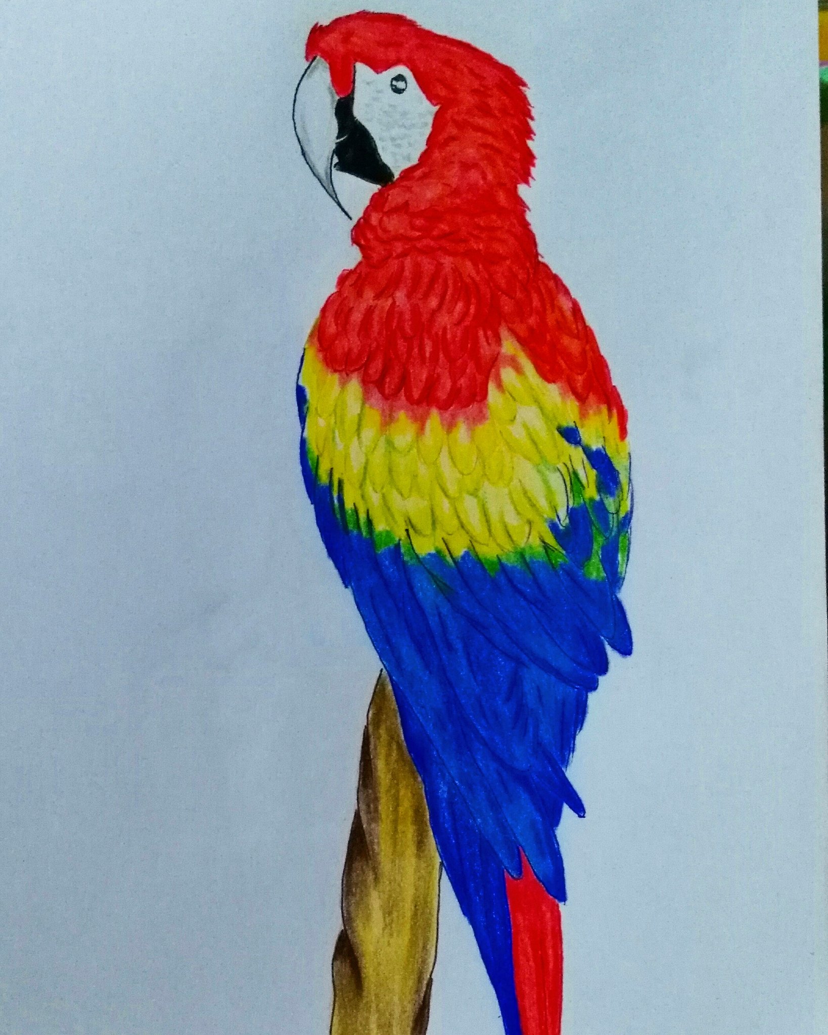 Loro a lápices de colores | Pinturas de aves, Loro dibujo, Pinturas hermosas