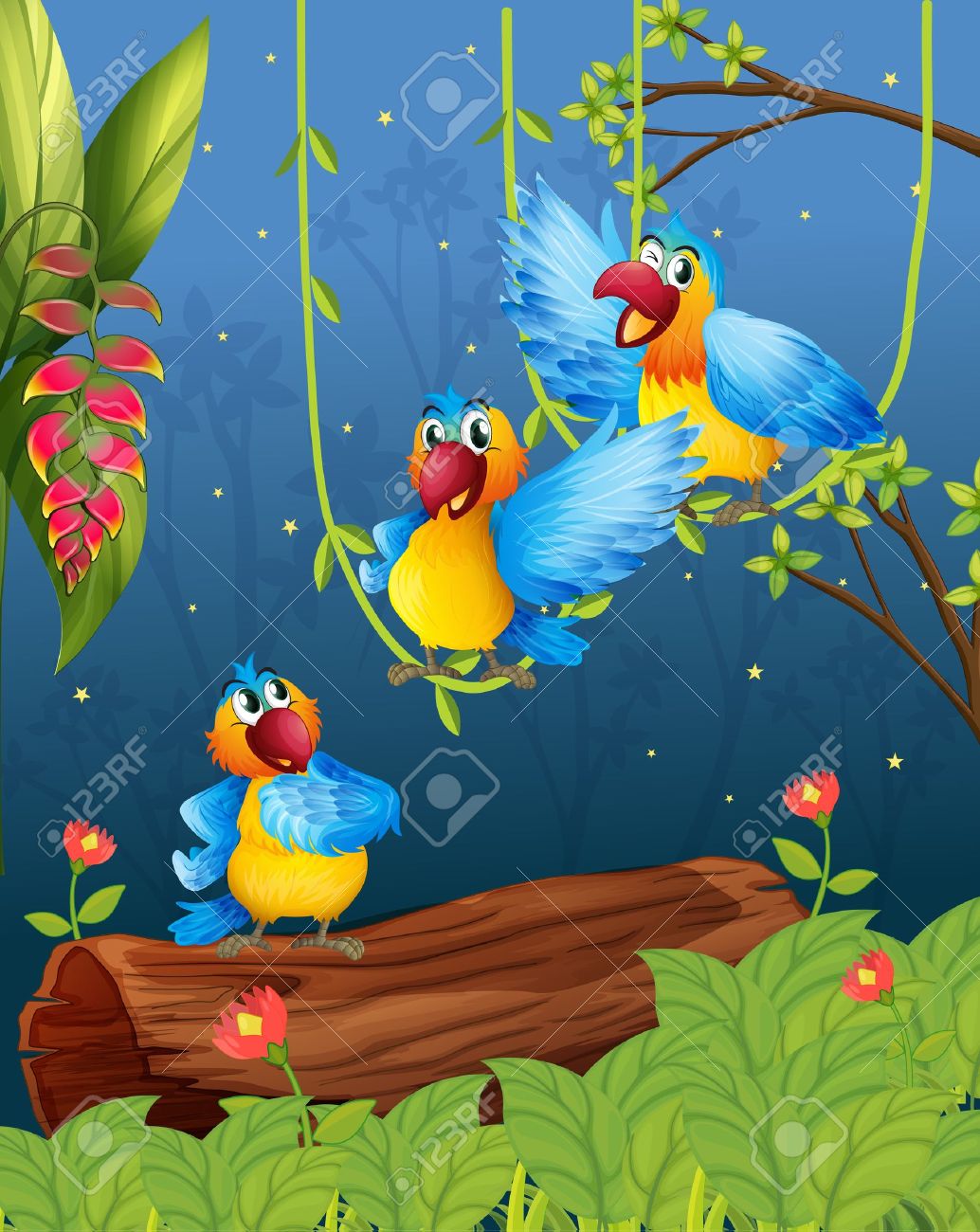 Ilustración De Tres Loros De Colores Ilustraciones svg, vectoriales, clip art vectorizado libre de derechos. Image 17892005