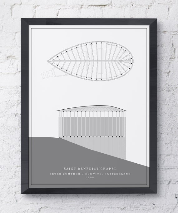 Capilla de San Benito / Peter Zumthor / Descarga digital Impresión de arquitectura Dibujo imprimible de arquitectura - Etsy España