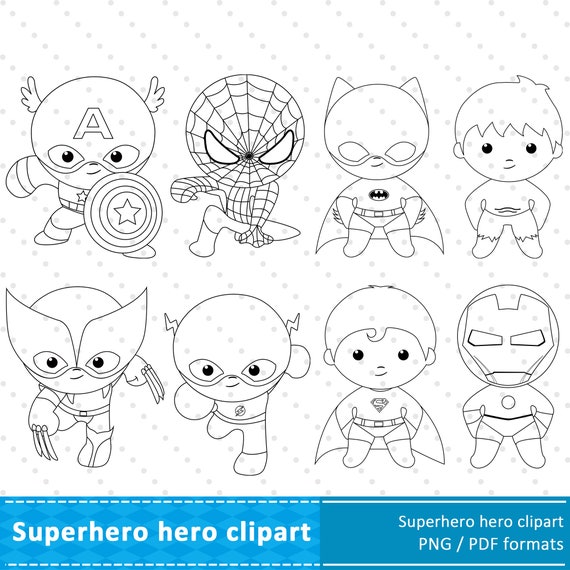 Superhéroes Cliparts en blanco y negro Superhéroes para colorear Fiesta de superhéroes Archivos PNG y PDF - Etsy España