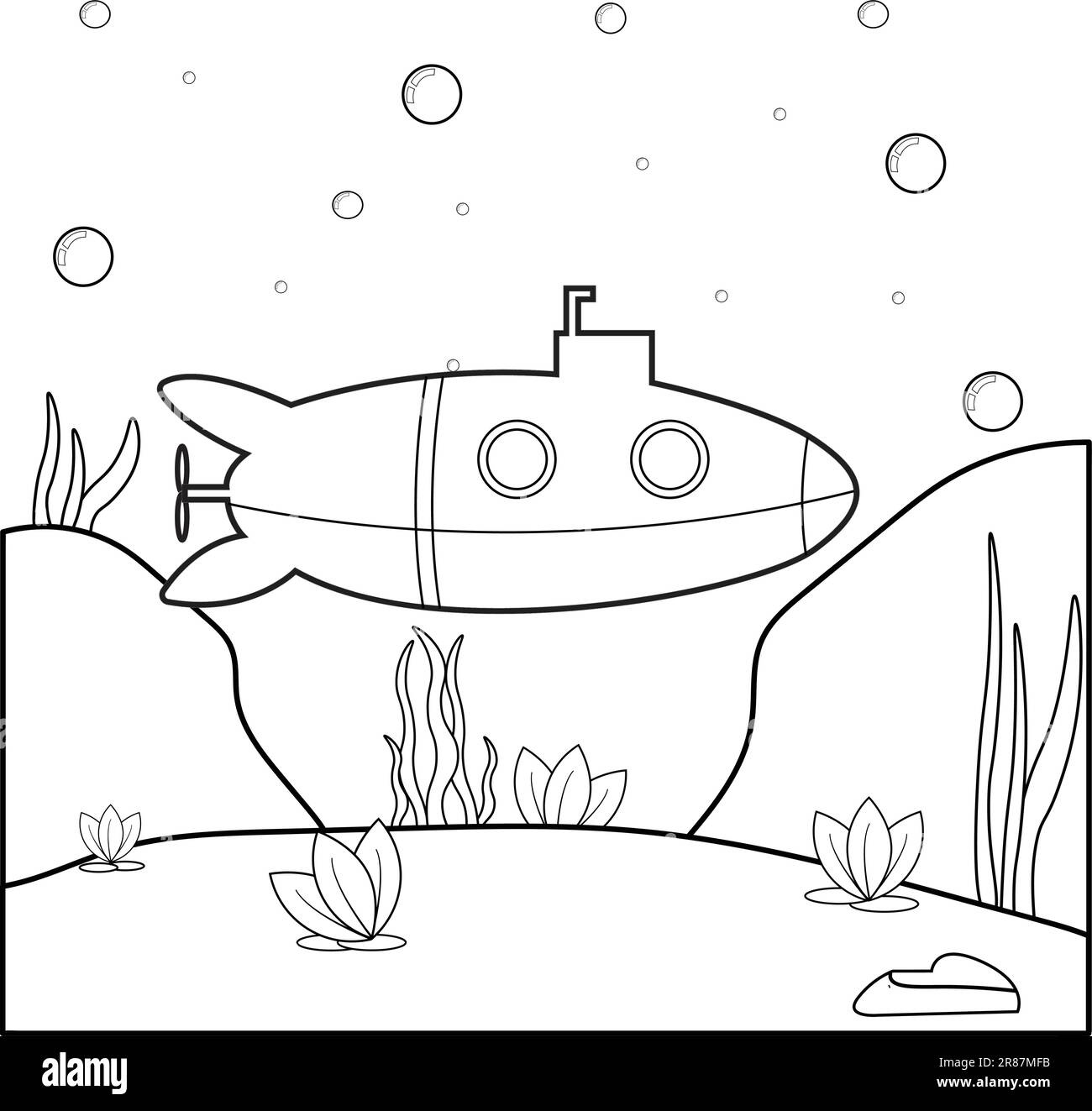 Libro para colorear submarino para niños. Página de actividades educativas para niños de edad preescolar y niños pequeños con transporte. Hoja de trabajo imprimible. Colorfu de dibujos animados Imagen Vector de stock -