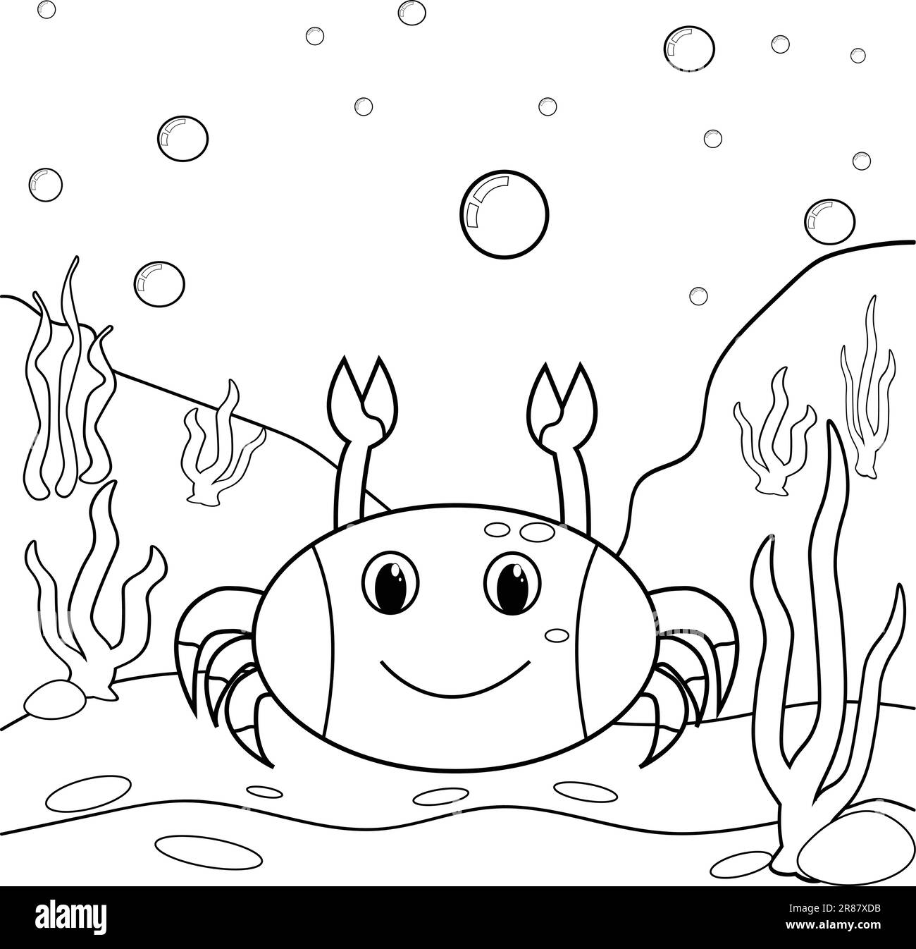 Bosquejo De Algas Marinas Submarinas Lindo Cangrejo Y Natación Composición Vectorial De La Vida Marina Ilustración del Vector - Ilustración de vida, negro: 252460731