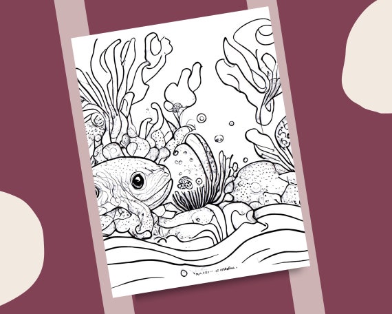 Hermosa página para colorear de escenas submarinas · Creative Fabrica