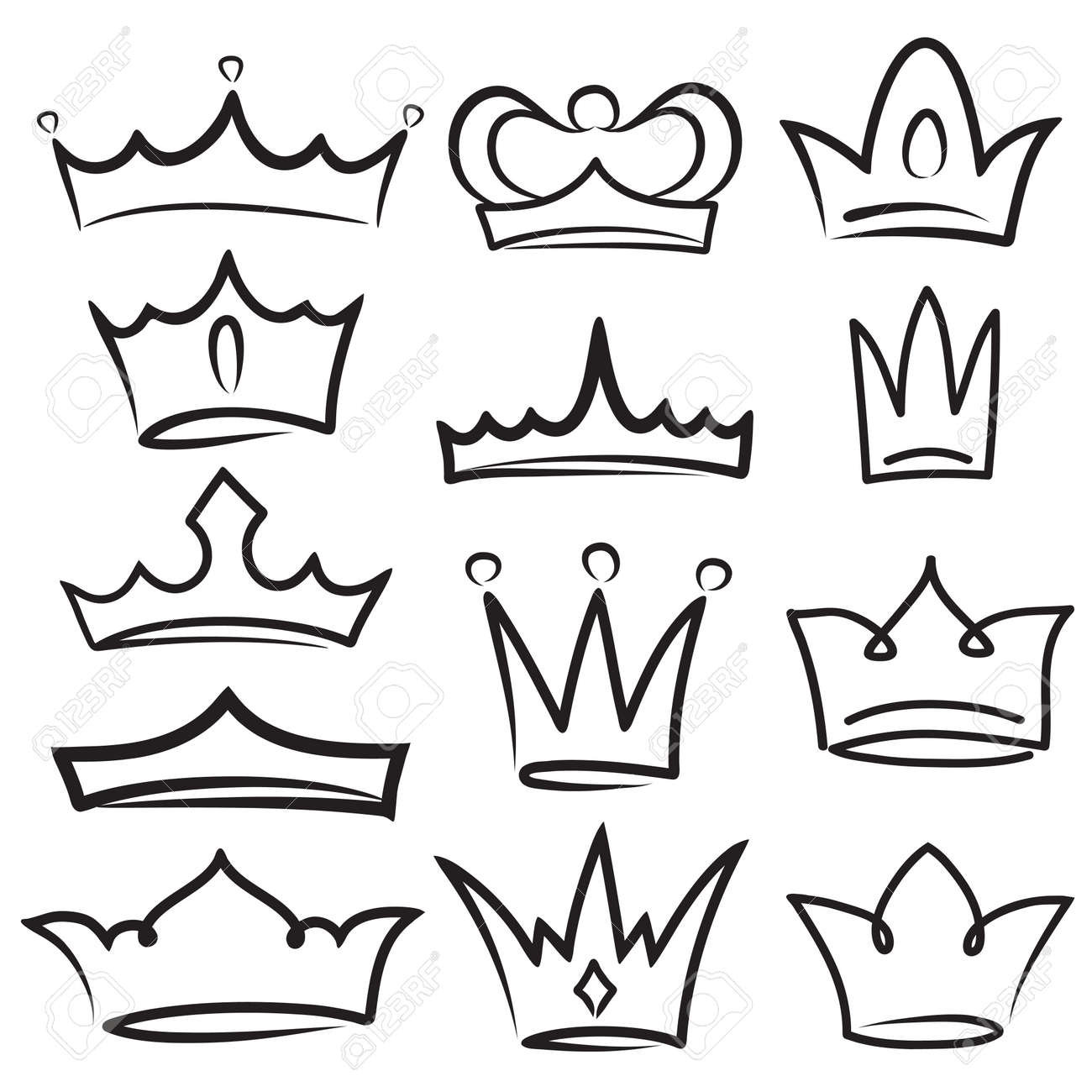 Corona Dibujada a Mano. Boceto De Dibujos Animados Coronas En Estilo De Línea. Diademas Simples De La Reina En Graffiti O Estilo G Stock de ilustración - Ilustración de negro, cepillo: 174352411