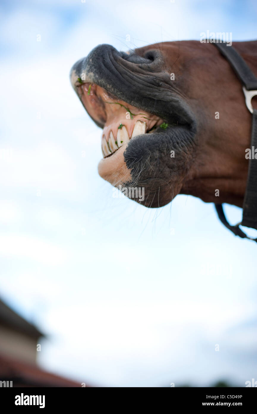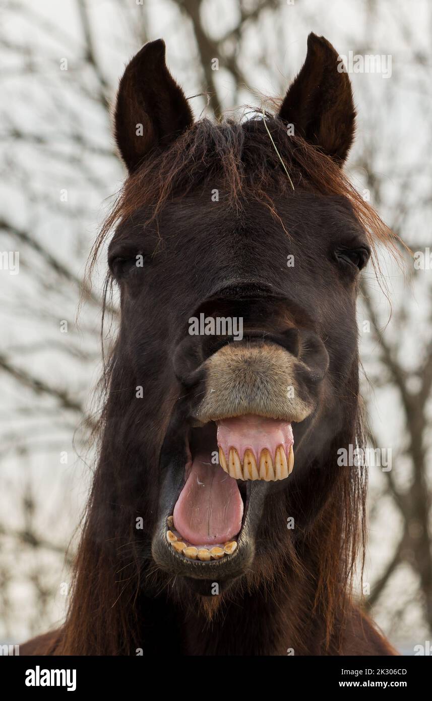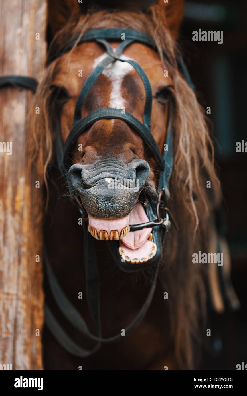 La sonrisa de un caballo de cerca. El caballo se reía o se ríe y muestra sus dientes Fotografía de stock - Alamy