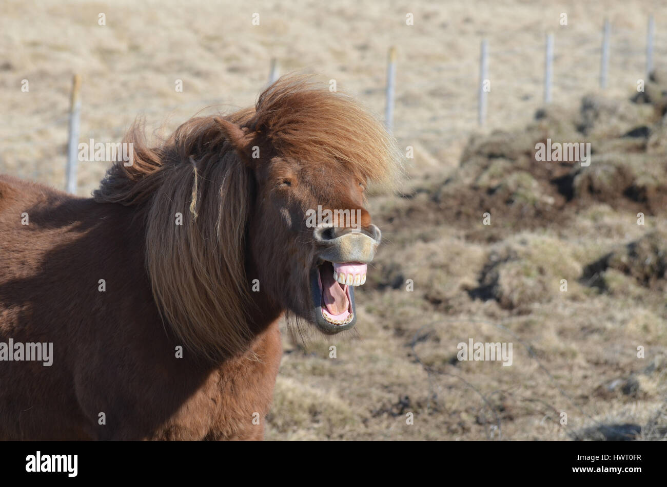 Caballo Islandés Sonriendo Y Riendo Con Grandes Dientes. Fotos, retratos, imágenes y fotografía de archivo libres de derecho. Image 120492654