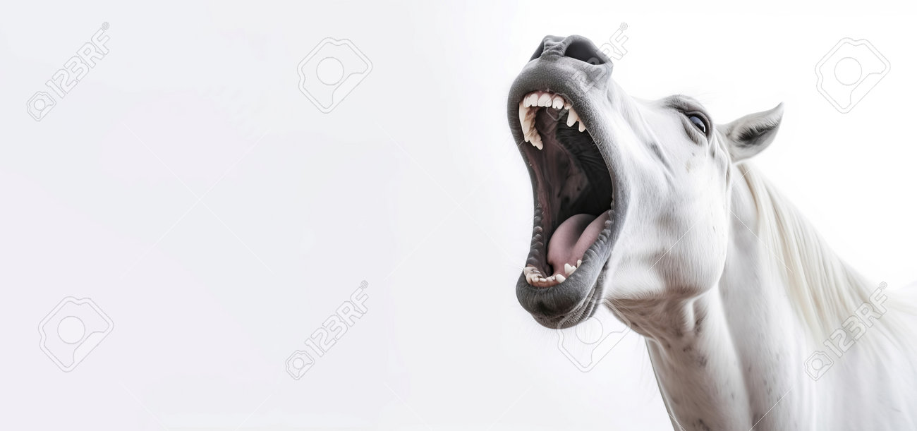 Banner De Cara De Grito De Caballo. Dientes De Sonrisa. Generar Ai Fotos, retratos, imágenes y fotografía de archivo libres de derecho. Image 205806933