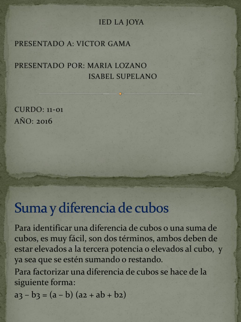 Factorizacion suma y diferencia de cubos perfectos by Nicolas Nudelman on Prezi