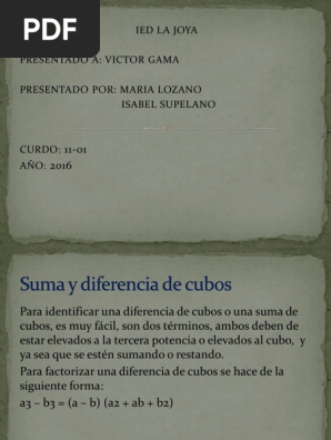 Suma y Diferencias de Cubos | PDF | Factorización | Conceptos matemáticos