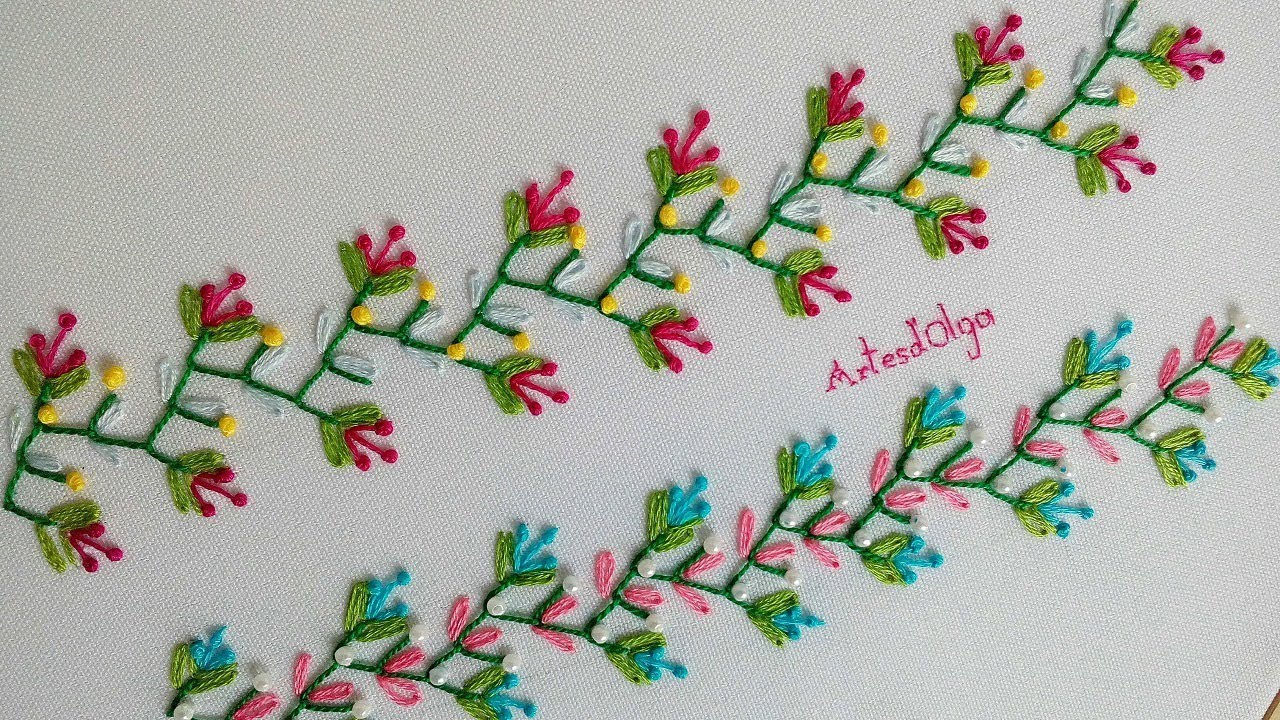 21 PUNTADAS DE BORDADO A MANO PARA HOJAS Y TALLO | HAND EMBROIDERY EASY STITCH NEW UNIQUE DESIGN - YouTube