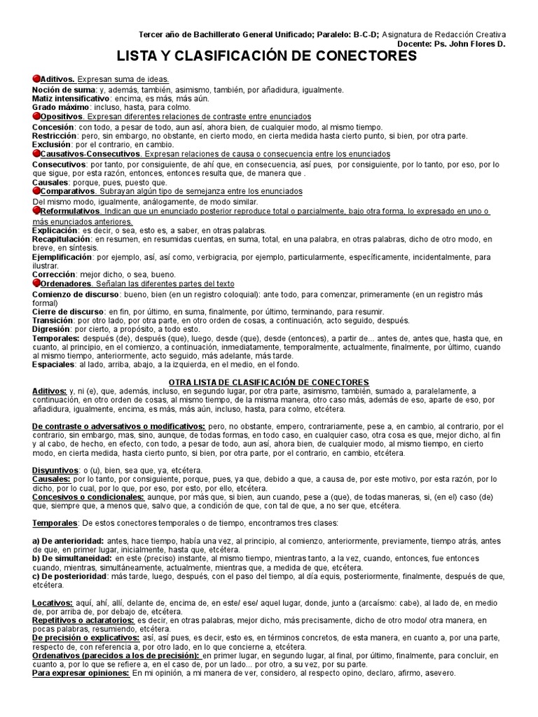 Lista y Clasificación de Conectores | PDF | Oración (Lingüística) | Verbo