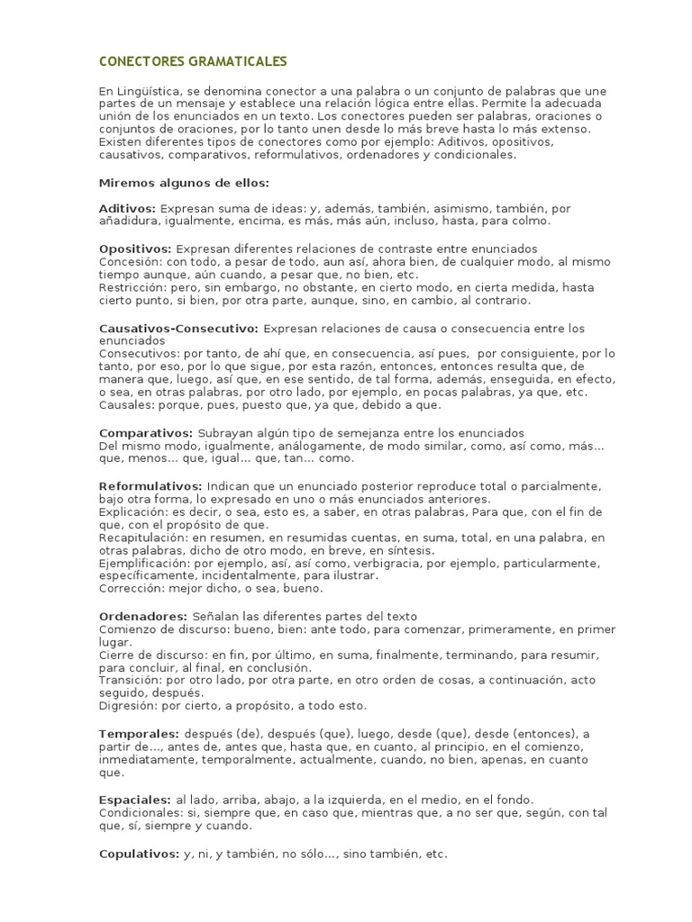 Conectores Gramaticales | PDF | Oración (Lingüística) | Palabra