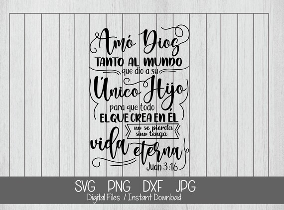 Amó Dios al mundo que dio a su HIjo Juan 3:16 SVG Bible verse, Christian svg, Bible verse spanish, versiculos cristianos cut files, Biblia - Etsy México