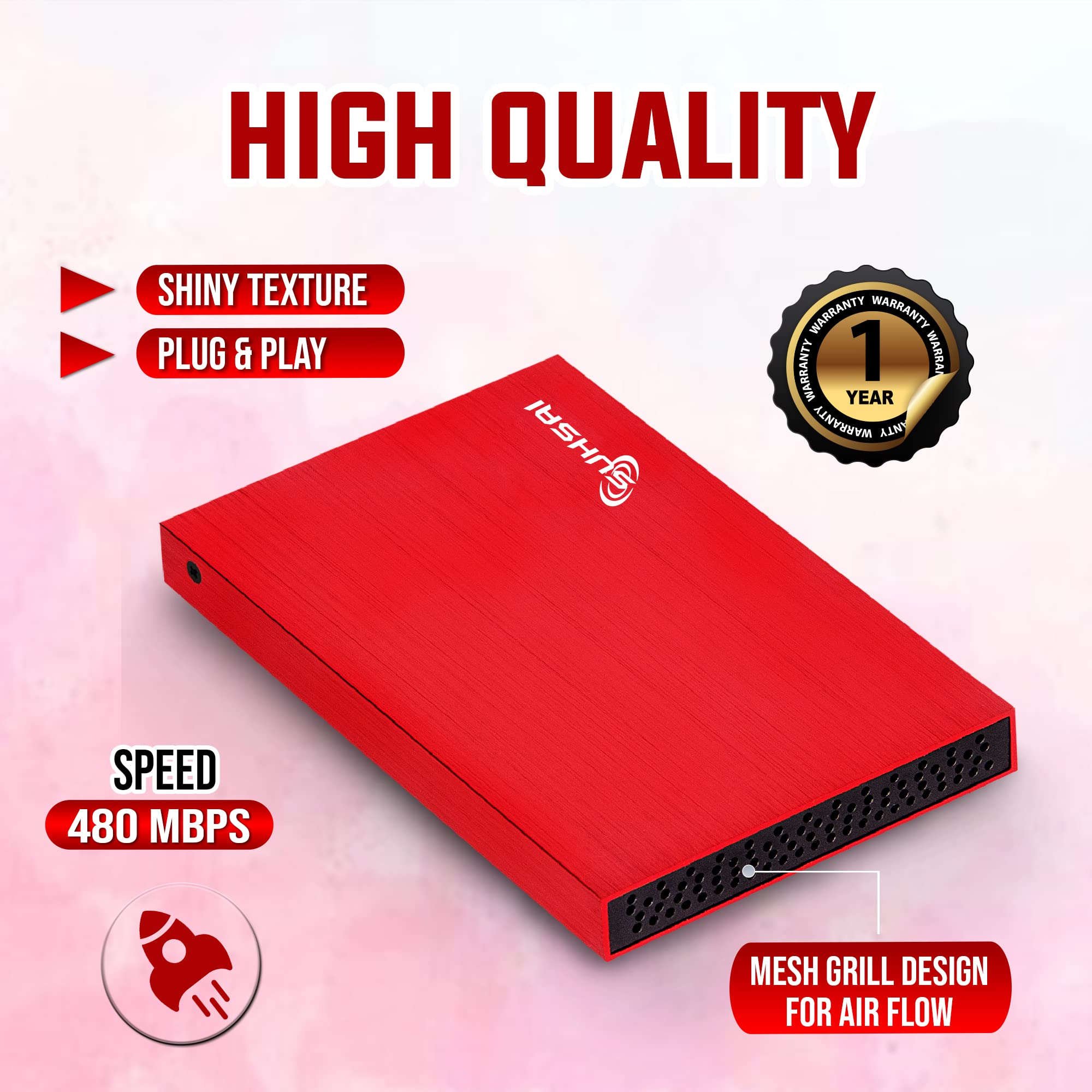 SUHSAI Caja de aluminio Disco duro externo 100GB USB 2.0 Slim & Compact Datos/Fotos Copia de seguridad y almacenamiento Expansión de memoria Portátil ...