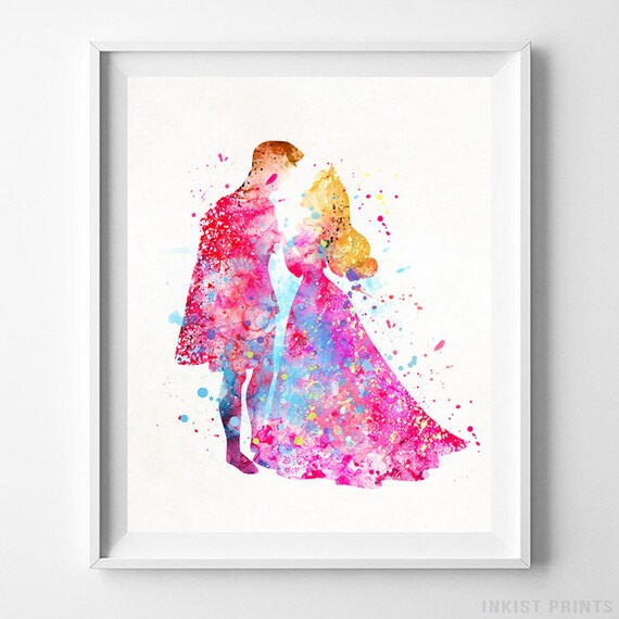 Arte de la Bella Durmiente, Princesa Aurora, Príncipe Felipe, Acuarela de Disney, Estampado de Aurora, Arte de Disney, Arte de pared de guardería, Tipo 2, Día de San Valentín - Etsy España