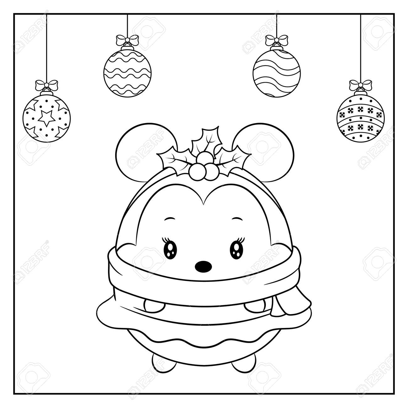 Feliz Navidad Lindo Ratón Dibujo Boceto Para Colorear Ilustraciones svg, vectoriales, clip art vectorizado libre de derechos. Image 158703029