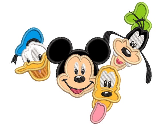 Mickey Mouse With Donald Duck and Goofy and Pluto Faces Applique ...