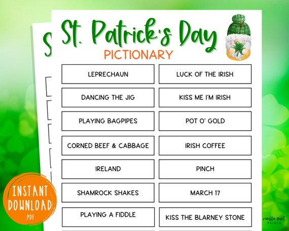 Juego Pictionary del Día de San Patricio / Juego de fiesta ...