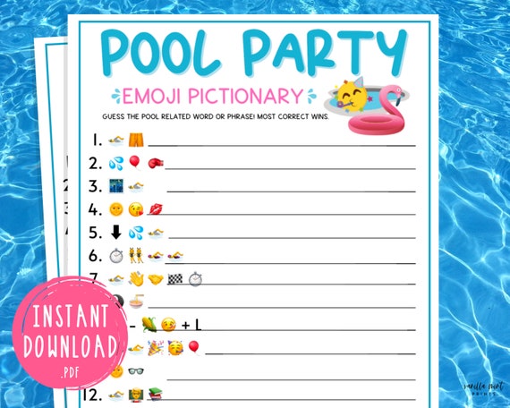 Pool Party Emoji Pictionary Game / Divertidos juegos de fiesta de ...