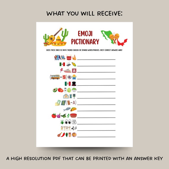 Cinco de Mayo Emoji Pictionary Juego imprimible, Divertido juego ...