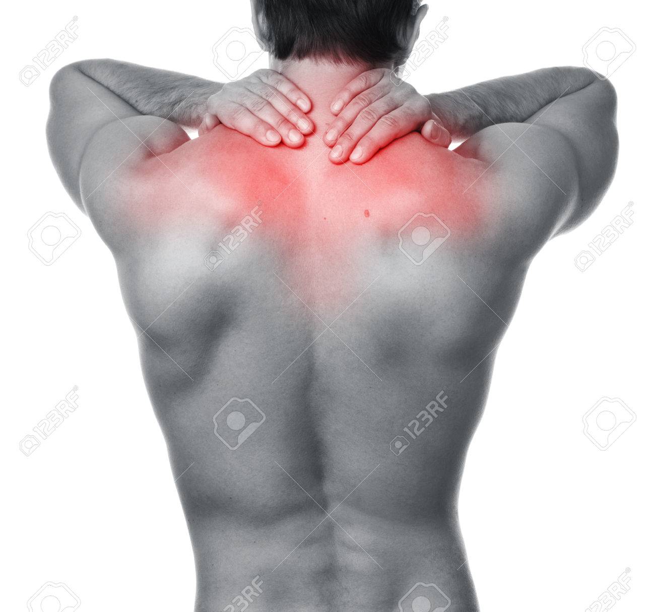 Dolor Muscular Trapecio Hombre Muscular Con Dolor Muscular De Hombro Imagen de archivo - Imagen de calambre, aislado: 242326125