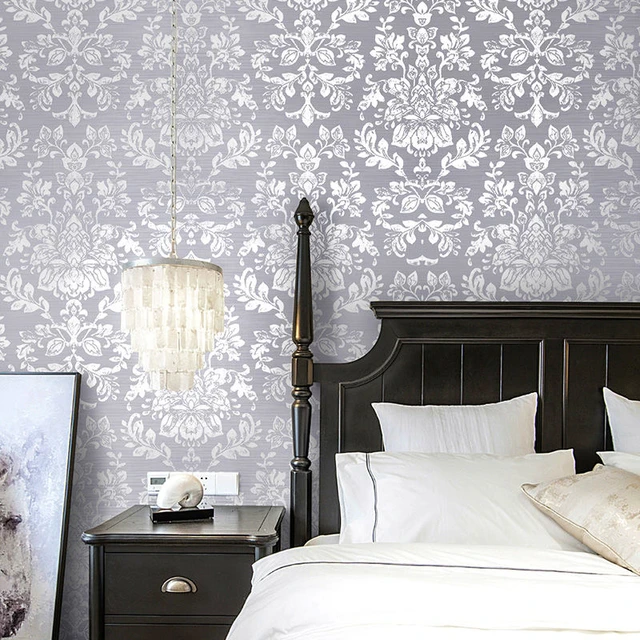 Papel Tapiz De Damasco 3d Metálico Moderno De Lujo, Papel De Pared De Flores Para Dormitorio, Sala De Estar, Rollo De Papel Tapiz Dorado, Gris Y Morado - Papel De Pared - AliExpress