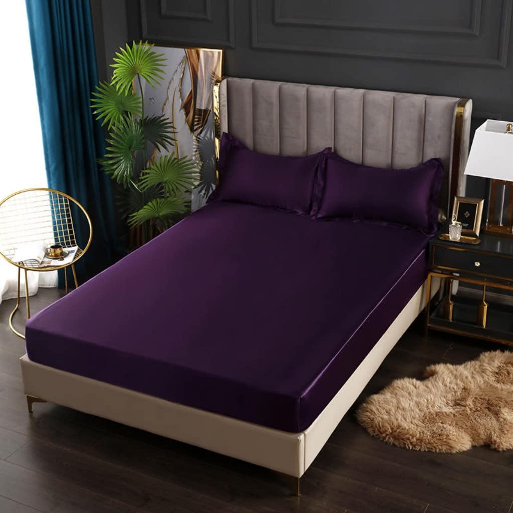 Amazon.com: Juego de sábanas bajeras de satén sedoso de color morado oscuro, tamaño individual, decoración de dormitorio, ultra suave, juego de sábanas de lujo con 2 fundas de almohada, hermosa sábana lisa (