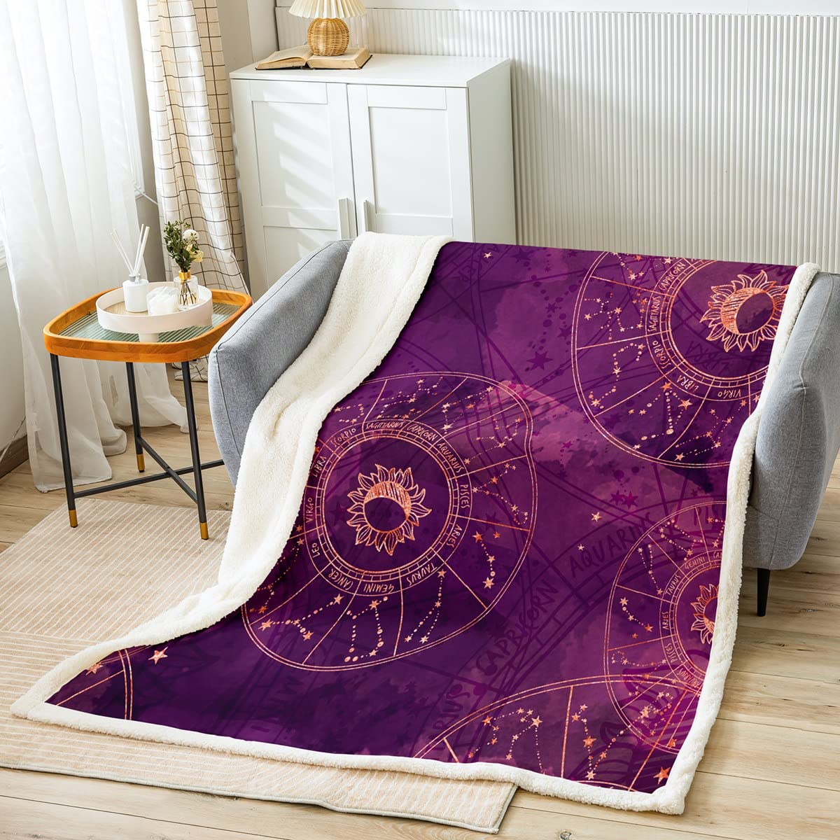 Manta de cama de Twelve Constellations, color morado, con teñido anudado, ligera, suave, acogedora, de lujo,