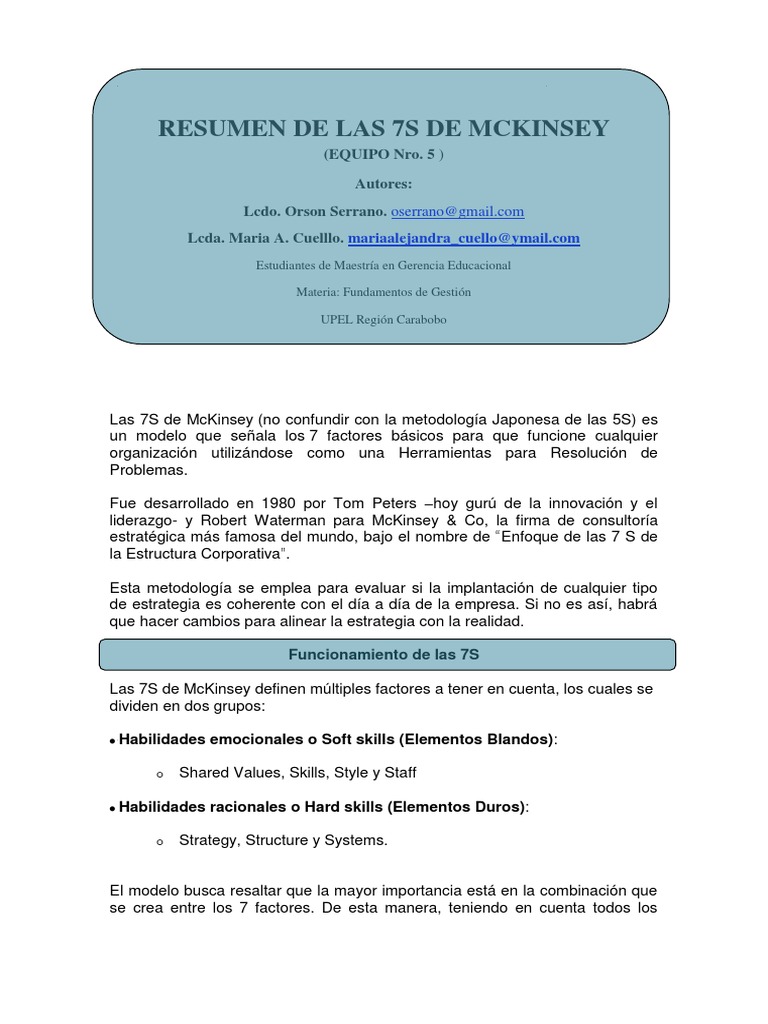 Resumen de Las 7s de Mckinsey Equipo Nro 5 | PDF | Recursos ...