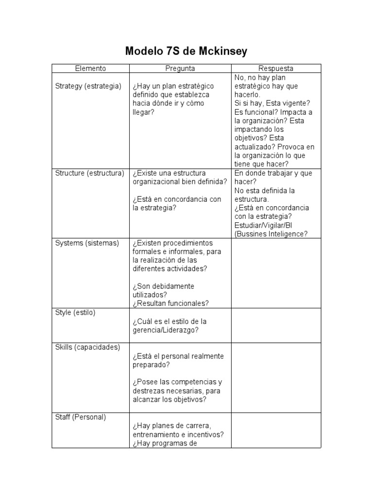 Las 7 S de McKinsey Ejemplo Empresa | PDF | Planificación | Liderazgo