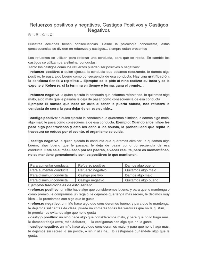 Refuerzos y Castigos, Positivos y Negativos | PDF | Comportamiento | Adultos