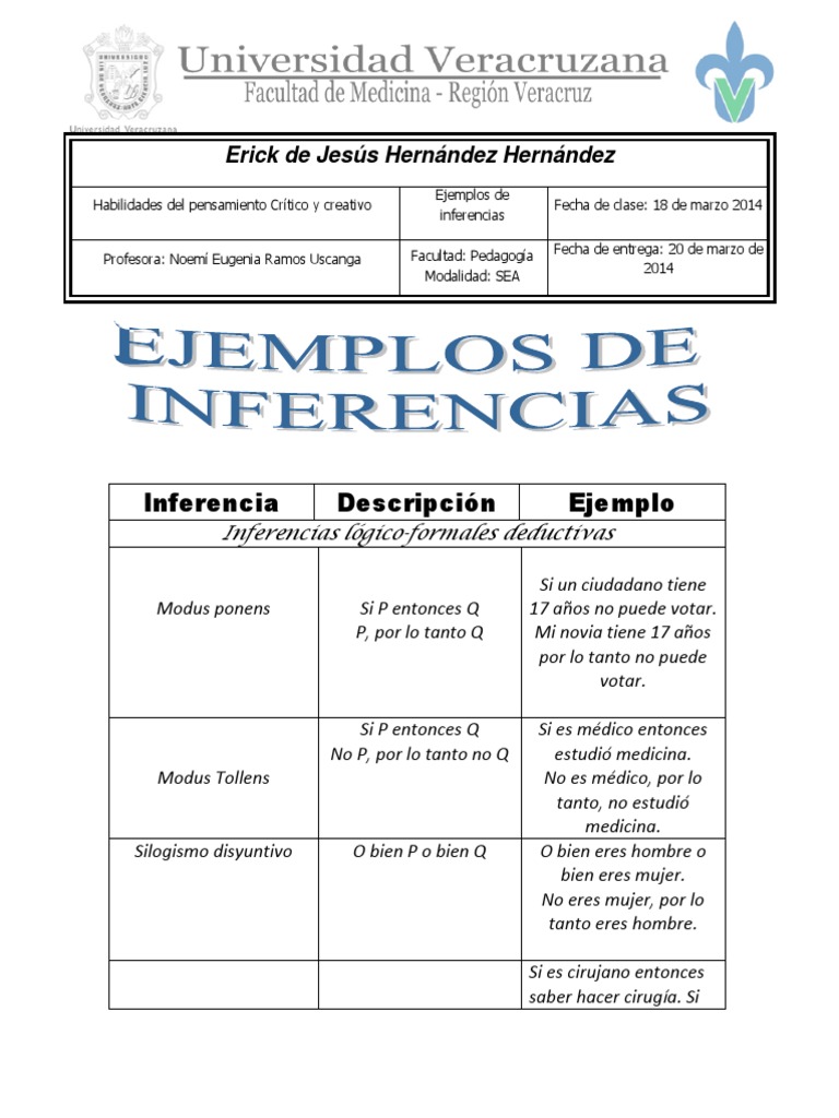 Ejercicios sobre la Inferencia para Tercero de Secundaria - LA INFERENCIA Inferir es llegar a una - Studocu