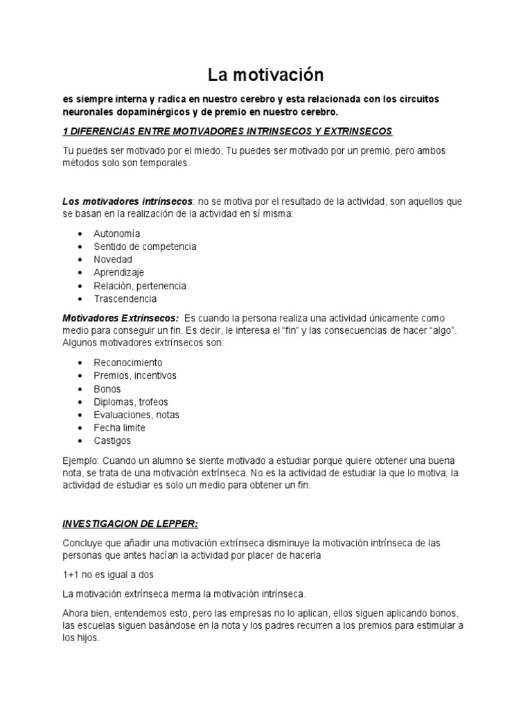 Motivación intrínseca y extrínseca - Apuntes de Psicología | Docsity
