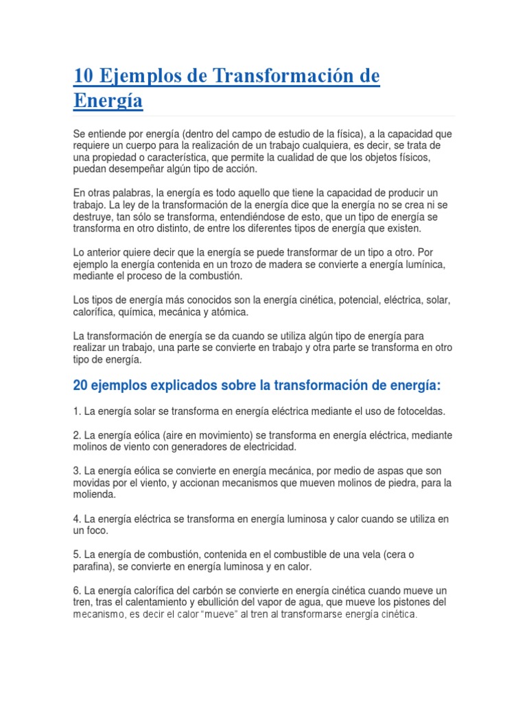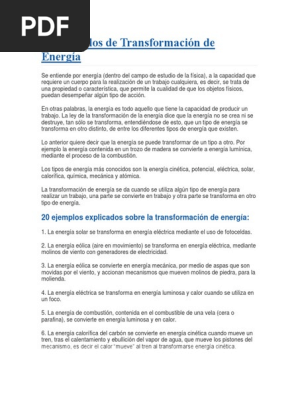 DOC) 0 Ejemplos de transformación de energía | Jean Torres - Academia.edu