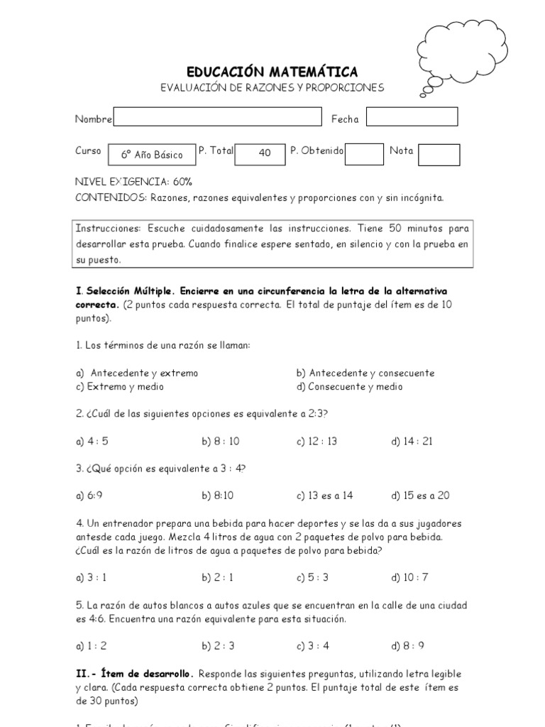 Prueba de Razones y Proporciones | PDF
