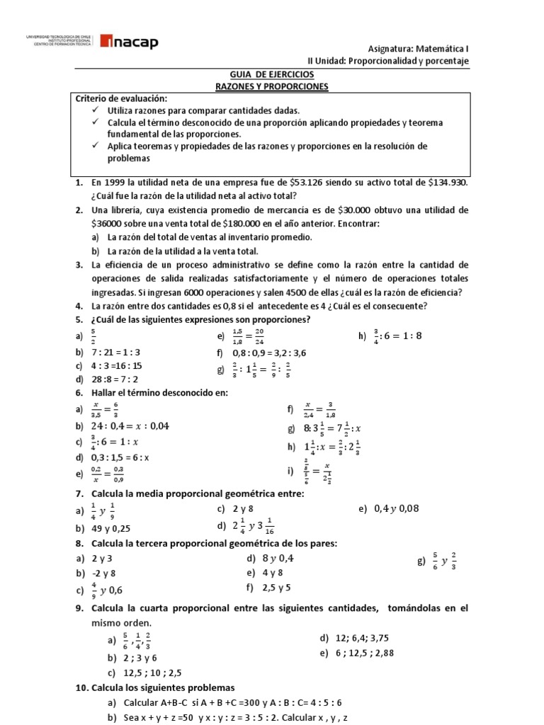 Guía Razones y Proporciones | PDF