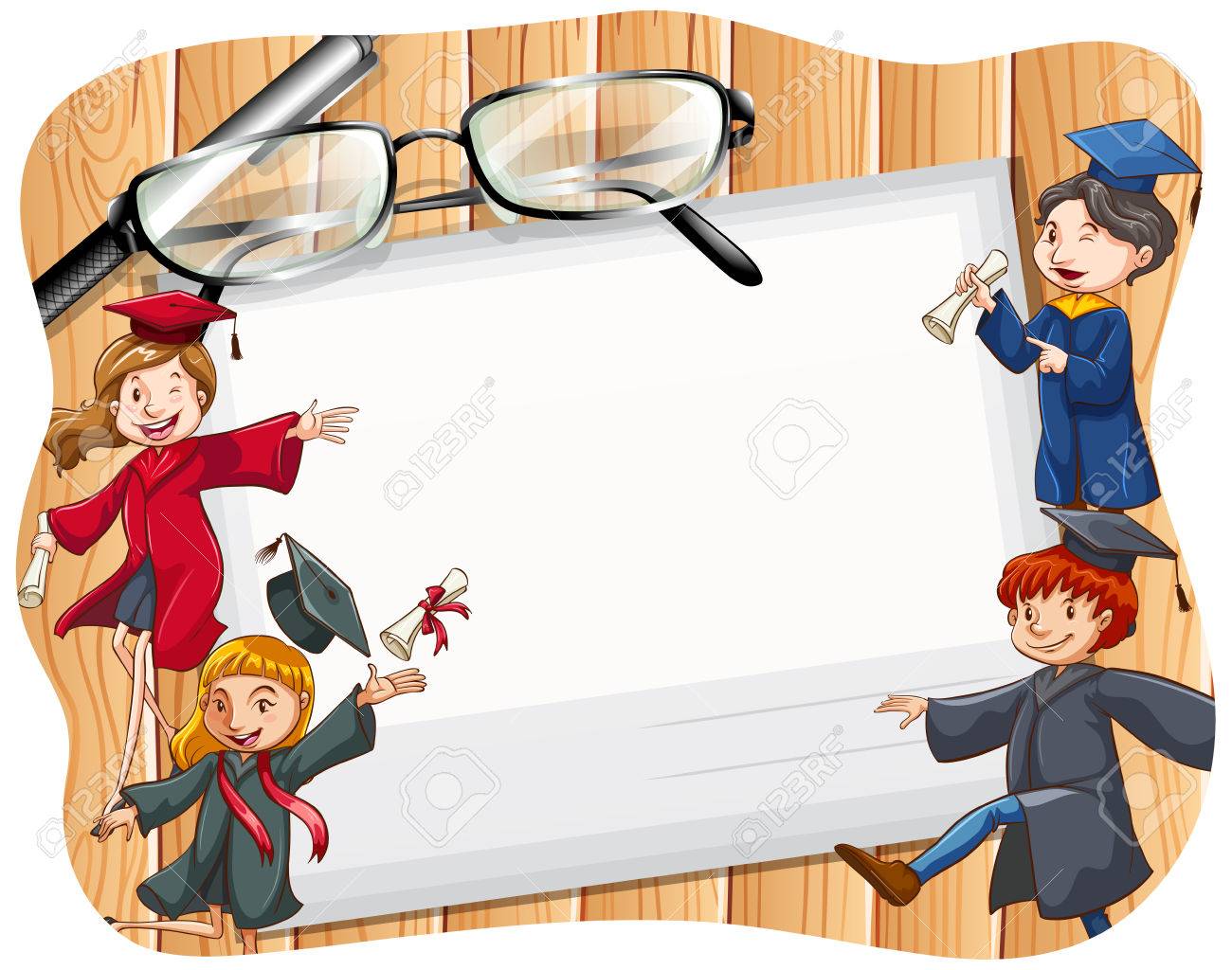 Niños graduados con cartel Stock Illustration | Adobe Stock